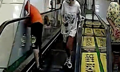 Des pompiers sauvent un garçon qui s'est coincé la tête entre un escalator et un mur d'un centre commercial en Chine. Des images de vidéosurveillance filmées dans la ville de Xinyang, dans la province du Henan, le 24 jui...