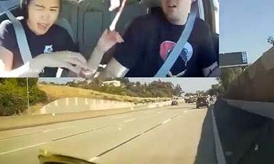 Une balle perdue perce le pare-brise de la voiture d'un couple californien, manquant de peu le passager. Garrett et Tina conduisaient sur l'autoroute à Oakland, en Californie, le 14 juin 2022, lorsqu'une balle perdue a t...
