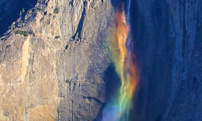 Des vents forts durant un moment idéal d’une journée ont créé une cascade arc-en-ciel de 730 m de haut, dans le parc national de Yosemite. Un photographe qui visitait le parc naturel californien du Yosemite a réussi à fi...