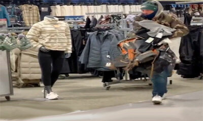 Aux États-Unis, un homme a été repéré par les vendeurs en train de voler des vêtements. Ils ont appelé la police qui est arrivé pile au bon moment ou le voleur commence par sortir du magasin avec les objets volés. Et mon...