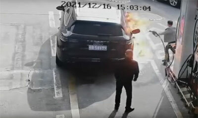 Ce jeudi 16 décembre 2021 à Shenzhen, en Chine, un couple à eu la frayeur de leur vie alors qu’il faisait le plein de leur voiture à une station-service. Un individu a fait irruption pour se saisi du pistolet d’essence e...
