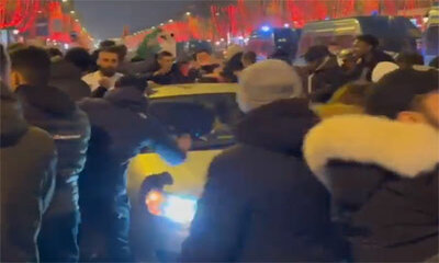 Mouvements de foule sur les Champs-Elysées à Paris après la victoire de l'Algérie en finale de la Coupe Arabe après les prolongations. Mais durant la soirée de ce samedi 18 décembre 2021, les supporters algériens et tuni...