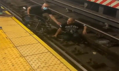 Ce 04 août 2021 à New York dans la station de métro d’Union Square, un homme en fauteuil roulant s'est retrouvé sur les rails du métro. Heureusement, un bon samaritain a sauté et a sauvé l'homme environ 10s avant que le ...
