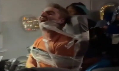 Des images insolites filmées le 31 juillet 2021 aux États-Unis, durant un vol Frontier Airlines ou un passager a été scotché à son siège après avoir peloté et frappé deux hôtesses de l’air. Le jeune homme de 22 ans est a...