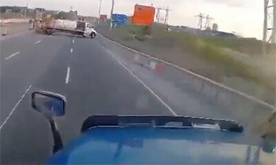 Au Québec, un chauffeur poids-lourd chargé d’assurer les travaux sur une autoroute a commis une erreur en s’insérant sur une voie rapide. Les images de cette accrochage ont été filmées par la caméra embarquée d’un camion...