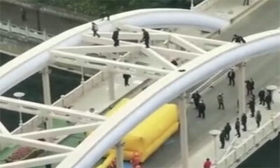 Ce vendredi 22 mars 2021 à Guiyang, en Chine, une femme a grimpé sur la structure d'un pont, risquant de tomber de plusieurs mètres. Forcément, des pompiers et policiers sont intervenus pour éviter un accident avec notam...