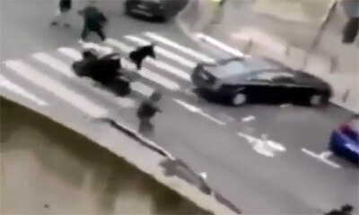 Le syndicat de la police Alliance vient de diffuser sur Facebook une vidéo dans laquelle deux policiers à moto qui traversent une rue se font prendre à partie par plusieurs individus. On peut l’un des hommes venir frappe...