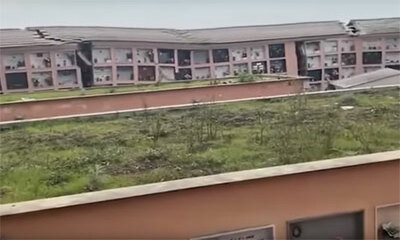 Le cimetière de la ville de Camogli, situé sur un flanc de falaise, s'est effondré. Une partie importante du cimetière s'est écroulée faisant tomber plus de 200 cercueils dont certains ont été engloutis par la mer. Des p...