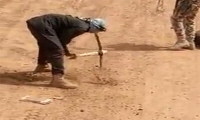 Des images vidéos tournées en Syrie ou un convoi militaire roule au ralenti. Pourquoi, il doit être prudent pour éviter de rouler sur des mines ou explosifs cachés sous la terre. Et lorsqu’un doute est là, un homme est c...
