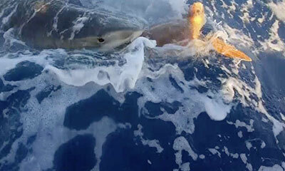 Au large des Abacos, aux Bahamas, deux pêcheurs ont été témoins de l'attaque d'un requin-tigre sur une tortue de mer. La tortue qui est entrainée contre l'embarcation des pêcheurs, tente de trouver refuge sans y arriver....