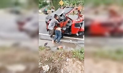 Sur une route entre San Miguel Panán et Chicacao, au Guatemala, un chauffeur de taxi en état d’ivresse a perdu le contrôle de son tuktuk et a fini dans le décor. Un passager a été projeté et s’est évanoui sous le c...
