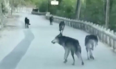 Des images incroyables qui nous montre une meute de loup à l’entrée d’un village en France. A l'entrée du village de Saint-Martin-Vésubie, une voiture suit une meute de 5 loups. A priori, il s'agirait de loups Noirs du C...