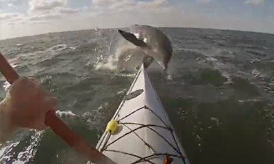 Un kayakiste se prend un dauphin à Lewes dans le Delaware aux États-Unis. Un internaute raconte : "Je faisais du kayak au Cape Henlopen State Park à Lewes, dans le Delaware ce 6 octobre lorsqu’un grand dauphin a sauté p...
