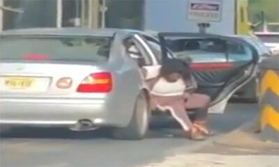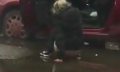 En Russie, une femme ivre s'arrête au bord de la route pour faire pipi. Un homme avec son téléphone portable filme de sa voiture la scène insolite. On peut voir la femme en position accroupie pour uriner et se vider la v...