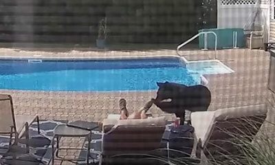Le samedi12 septembre 2020 à Greenfield, dans le Massachusetts, Matthew Bete profite de sa terrasse pour faire une sieste au bord de sa piscine. Mais celle-ci a été de courte durée lorsqu’un ours noir a fait irruption po...