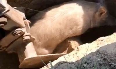 Le 26 avril 2019 à Stavropol Krai en Russie, un ouvrier trouve un cochon pris au piège dans un trou. Pour le sortir de ce piège, il décidé alors d’utiliser sa pelleteuse pour sauver l’animal tout en douceur.