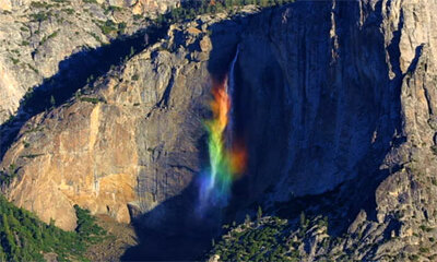 Un photographe en visite le parc naturel californien du Yosemite a capturé une superbe scène assez rare. En filmant une chute d’eau de plus de 440 mètres de hauteurs, il a immortalisé un arc-en-ciel incrusté dans l’eau. ...