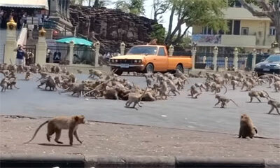 A cause du coronavirus, les singes envahissent les centres-villes en Thaïlande. CE mercredi 11 mars 2020, des centaines de singes affamés ont envahi le centre-ville de Lopburi, et se sont battus pour une banane. Ces imag...