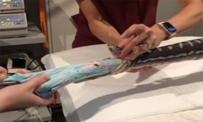 À Sydney, en Australie, un python de 3 mètres de long doit être opérée rapidement en urgence au Small Animal Specialist Hospital (SASH) après avoir avalé une serviette de bain. Avec l’aide d'un endoscope placé dans le tu...