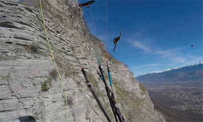 A Saint Hilaire du Touvet dans l’Isère en France, le parapentiste Clovis homme était en train d’effectuer un vol lorsqu’il s’est approché d’un nid d’aigles. Effrayés, les volatiles ont pris la fuite mais l’un d’eux est v...
