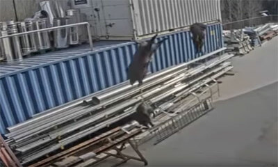 Des sangliers coincés sur le toit d’une usine, ont décidé de sauter du toit du bâtiment. Sur ces images, on peut voir un troupeau de sangliers sauter du toit d’une usine dans la ville espagnole de Viladrau (en Catalogne)...
