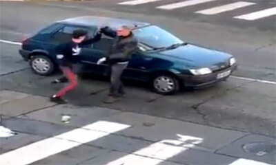 En France, deux jeunes hommes ont une altercation dans la rue et insultent leur maman. Alors qu’il vient de se prendre un coup de poing, un des jeunes qui porte un jogging bande rouge n’est toujours pas calmé. Il continu...