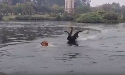 Dans un lac en Chine, un golden retriever se fait attaquer par un cygne noir. Alors que le canidé nage dans un lac à Chengdu, en Chine, un Cygnus vient lui sauter dessus pour lui donner de violents coups de bec. Heureuse...