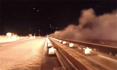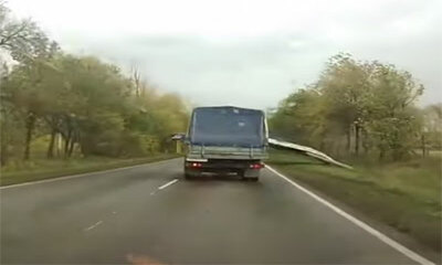 A Magnitogorsk en Russie, le conducteur d’un camion a du montrer ses réflexes pour éviter une pancarte. Ce panneau publicitaire est tombé sur la route juste devant son camion ou le chauffeur à juste eu le temps de le con...