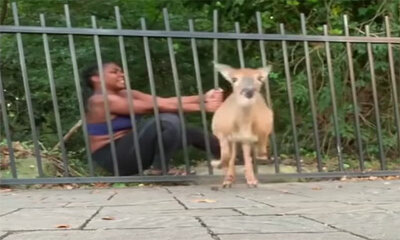 En Géorgie aux États-Unis, une femme qui fait son jogging sauve une biche coincée dans la clôture du parc Stone Mountain. Mais après quelques secondes, l’animal sauvage vient se coincer à nouveau dans une barrière de séc...