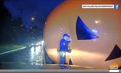 Un agent de police de l'Ohio a vécu un moment cocasse lorsqu'il a tenté de dégager une citrouille gonflable géante bloquant la circulation à Bay Village, près de Cleveland. Alors qu'il s'approchait de la décoration souff...