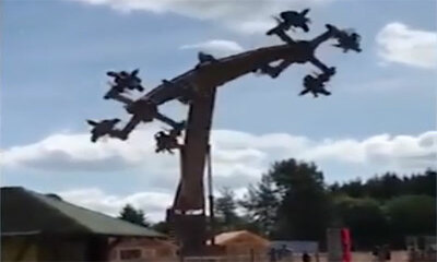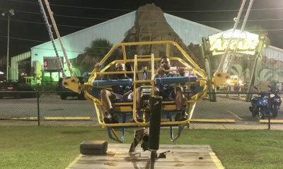 Incroyable ! A Panana City Beach en Floride, deux hommes grimpent à l’intérieur d’un manège a sensation forte le Slingshot. Lors de la mise en tension des élastiques, un élastique à gauche de votre écran va carrément céd...