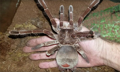 La Theraphosa blondi, mieux connu en français comme mygale de Leblond, mygale Leblondi, est une espèce d'araignées mygalomorphes de la famille des Theraphosidae. Elle peut mesurer plus de 20 cm comme le montre Rons Spide...