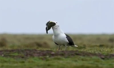 Le Goéland est un oiseau opportuniste et son régime alimentaire est très divers. Cette vidéo qui ont été filmées par Irène Mendez Cruz, sur l'ile de Skokholm au Royaume-Uni. nous montrent un goéland qui vient de chasser ...