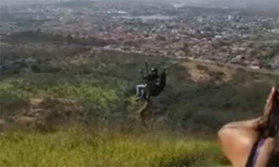 Qu’il est con ! Ce dimanche 2 mai 2019 à Sete Lagoas, au Brésil, un chien pas très malin a attaqué un parapentiste au décollage. Problème, le chien qui mordait une sangle du parachutiste est resté suspendu dans le vide p...