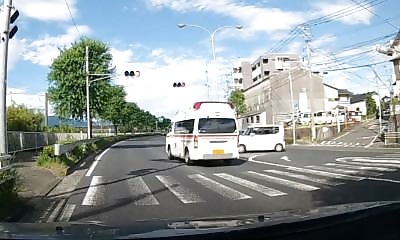 Sur la route nationale 207 dans la ville d'Isahaya au Japon, un automobiliste tente de couper la priorité à une ambulance. Mauvaise idée.
