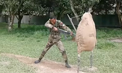 Un caméraman a été invité a aimé un entraînement des forces spéciales du Bangladesh à la baïonnette. Pour cela, on peut voir les militaires se précipite, les uns après les autres, sur un mannequin en paille dans lequel i...