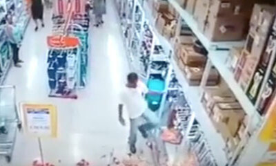 La folle ! Dans un supermarché au Brésil, une fille a joué avec le feu et a volontairement incendié un rayon. On peut la voir mettre le feu et prendre un malin plaisir à regarder le feu se propager. Les clients intervien...