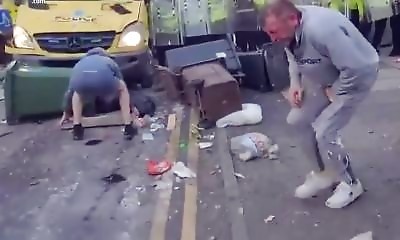Après le drame de Southport, où 3 petites filles ont été poignardées, des rassemblements anti-immigration ont eu lieu dans toute l'Angleterre. Ici, alors que les manifestants jettent des briques sur la police, l'un d'eux...