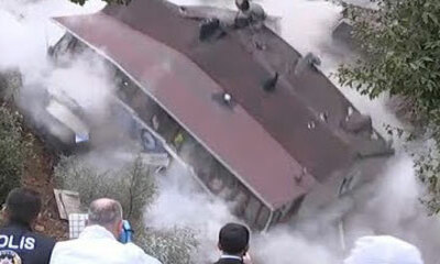 Lorsque de travaux de terrassement du à de fortes pluies, le mur de soutien d’un bâtiment est tombé, dans le quartier de Beyoglu à Istanbul. Problème, un immeuble de 4 étages construit illégalement en 1994 sans autorisat...