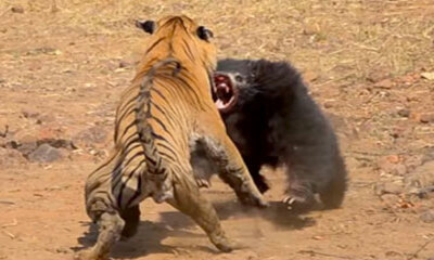 Des images filmées lors d'un safari dans le parc national de Tadoba en Inde, ou la rencontre entre un tigre et une ourse a donné lieu a un violent affrontement. L’un défendant son territoire, l'autre sa progéniture, le c...