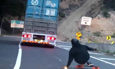 Le Mont Victoria Pass dans la région de New South Wales en Australie est connue pour ses routes raides, sinueuses et surtout dangereuses. C’est ainsi que ce skateboard a voulu emprunter cette route malgré la circulation ...
