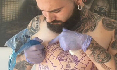 Luc Allain-Rouselle qui vit à Montréal au Canada a passé 30 heures à se tatouer lui-même son corps. Son tatouage représente une chèvre satanique et de squelette du pape. Il a fallu cinq sessions à Luc Allain-Rouselle de ...