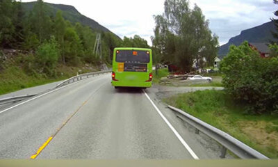 Il manque de se faire écraser de justesse ! Sur une route de montagne en Norvège, un enfant manque de se faire écraser par un camion en traversant. Le môme qui était derrière caché derrière un bus a couru pour traverser ...