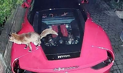 Un renard a surpris Azid Gungah, en déféquant sur sa Ferrari de couleur rose d'une valeur de 250 000 €. L'incident, filmé par une caméra de sécurité installée sur la porte d'entrée de sa maison à East London, a été décou...
