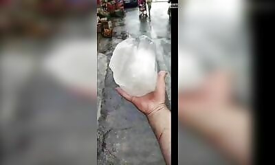 Lors d'une tempête à Canton en Chine, des grêlons de la taille de noix de coco sont tombés du ciel. Inutile de dire qu'il ne fallait pas s'y retrouver dessous !