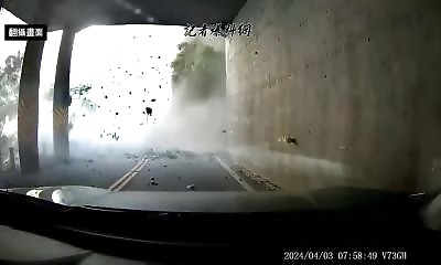 Images d'une dashcam, dans les zones montagneuses de Taiwan, lors du tremblement de terre du 3 avril 2024.