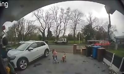 À Manchester, Angleterre, des vents violents ont causé la chute d'un conteneur depuis un grue, qui s'est écrasé contre la façade d'une maison. Un petit fille jouant à proximité a pu s'échapper à temps. La maison a subi d...