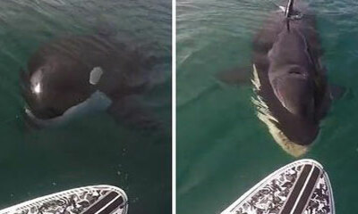 A Kuaotunu Beach en Nouvelle Zélande, Lukas Reilly (27 ans) qui fait du Paddle a reçu la visite d’un Orque peu timide. L’animal s’est approché de sa planche pur essayer de la mordre avant de prendre la fuite. Une rencont...