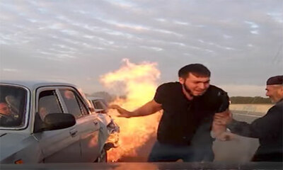 En République d'Ingouchie qui est une république, sujet fédéral de la Fédération de Russie qui se trouve dans le Caucasse du nord, un accident de circulation a crée un bouchon sur la route. Alors qu’une voiture ralentit ...