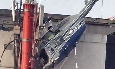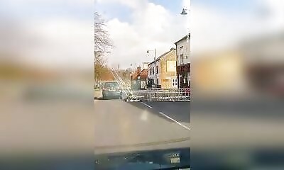 Près d'un pub à Buckingham (Angleterre), un échafaudage s'est effondrée sur une route animée, projetant deux ouvriers au sol. Les ouvriers ont évité de peu l'accident, grâce à une manœuvre habile d'un conducteur qui arri...